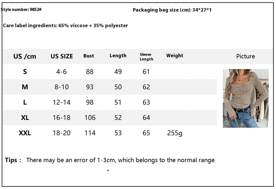 Women's T-shirt Square Collar Slim Fit Pullover Knitted Long Sleeve